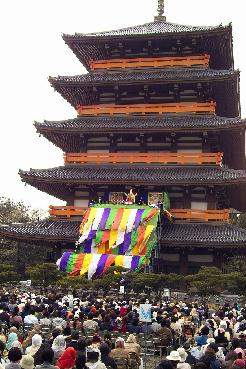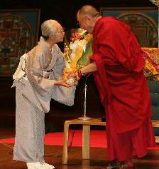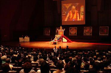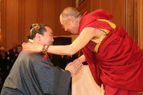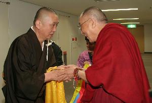 | 平成17年4月10日より14日まで、ダライ・ラマ法王猊下は初めて熊本をご訪問され、講演会や法話会を行われました。また、れんげ国際ボランティア会25周年記念祝賀パーティーへも出席され、蓮華院誕生寺本院でアジア各国の僧侶と共に、世界平和祈念法要を導師として執り行われました。 法王猊下は、明るく、冗談好きで、気配り上手な、慈悲深い方でした。まさに観音菩薩の化身として、人に力を与える慈悲行を日々実践されておられます。多くの人々に感激と感動と感謝とを与えられた法王猊下のご来熊でした。