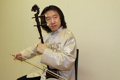 1963年中国吉林省遼源市出身。父兄の影響 1で5歳より胡弓を始める。1985年吉林省芸 術大学で胡弓を専攻し、卒業後吉林省民 族楽団に胡弓演奏家として入団。1992年吉 林省民族楽団の日本公演では首席演奏をつ とめる。この演奏旅行で日本に魅せられ、 1993年熊本大学教育大学音楽科に留学。卒 業後も熊本に残る。1995年『阪神大震災被 災者救済チャリティコンサート』、1996年 熊本県立劇場で行なわれた『大地の子チャ リティコンサート』は満員の観客を集め、 好評を博す。若手二胡奏者としてその実力 は群を抜くと各方面からも高い評価を得ている。九州を拠点に演奏活動を行うとともに、九州各地に教室を開設するなど後進の育成にも積極的に取り組んでいる。
