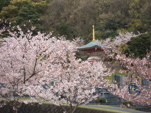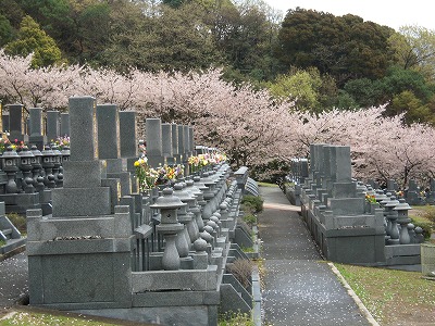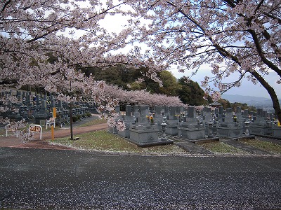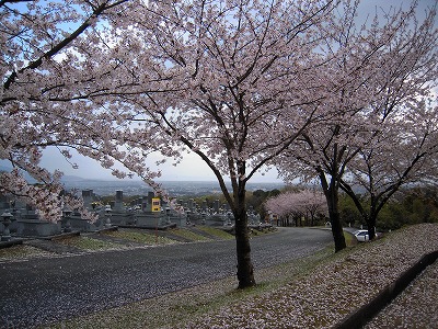 桜の開花状況です。写真のように、道路わきの桜並木は桜吹雪がきれいです。枝垂桜は1分咲き程度でしょうか?咲きはじめです。お花見を兼ねて、どうぞご家族でお墓参りにお出でください。ご先祖様もさぞ喜ばれることと思います。
